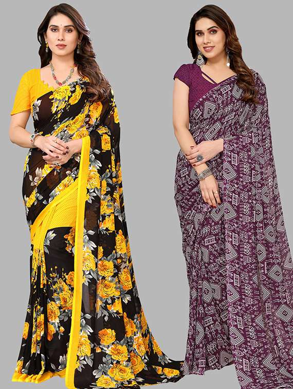 women pack of 2 casual wear sarees with blouse - 21439731 - Very Small Image - 1