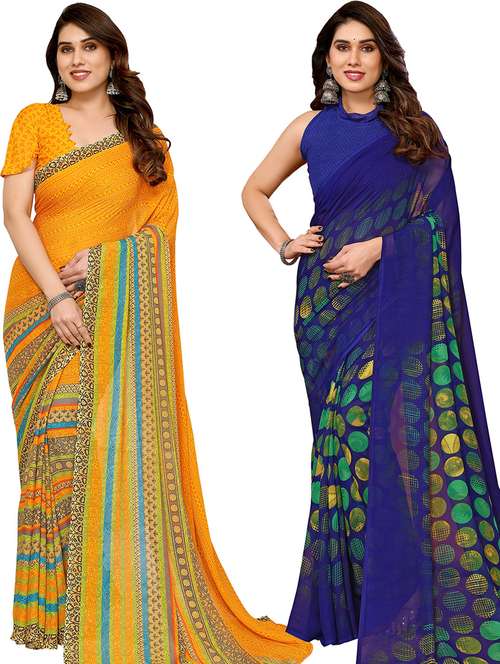 pack of 2 printed casual wear sarees with blouse