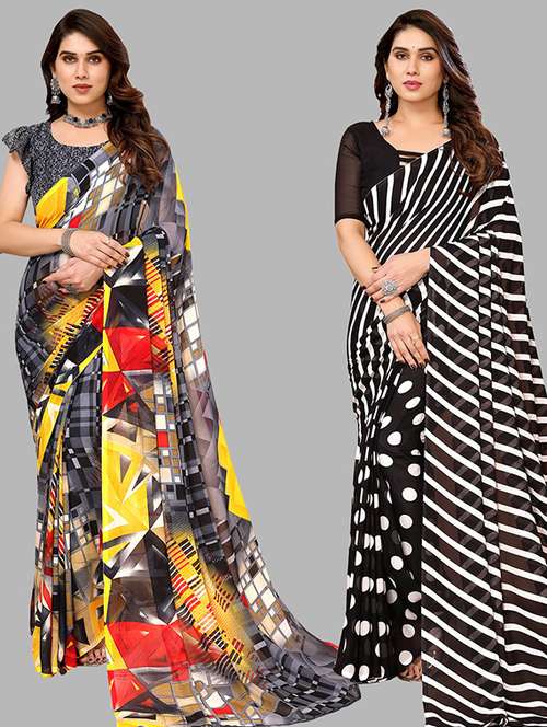pack of 2 printed sarees - 21439787 - Very Small Image - 1
