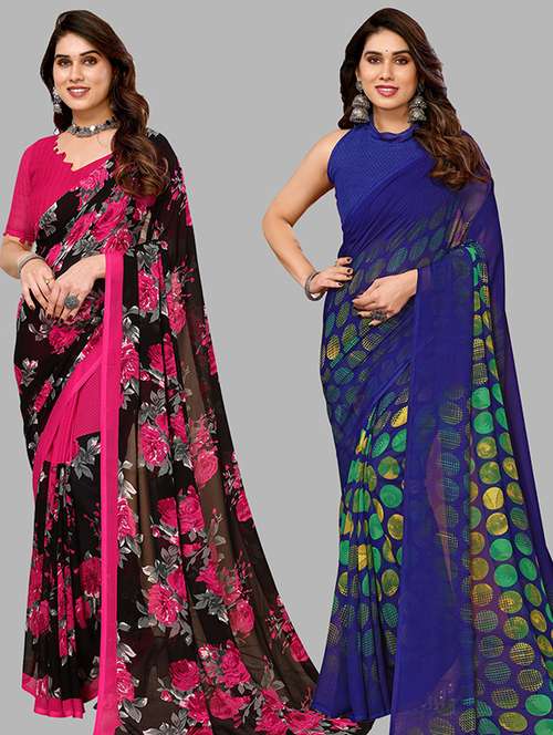 pack of 2 printed casual wear sarees with blouse - 21439829 - Very Small Image - 1