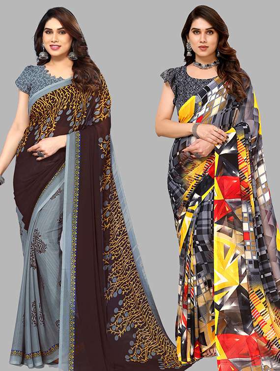 women pack of 2 casual wear sarees with blouse - 21439840 - Very Small Image - 1