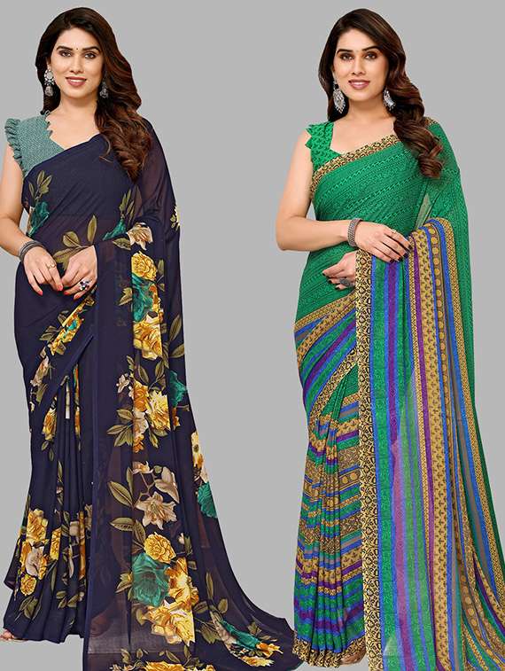 pack of 2 casual wear combo sarees with blouse - 21439886 - Very Small Image - 1