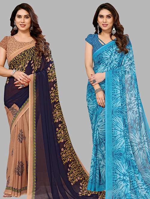 women pack of 2 casual wear sarees with blouse - 21439903 - Very Small Image - 1