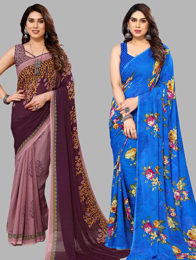 pack of 2 printed sarees with blouse - 21439920 - Very Small Image - 1