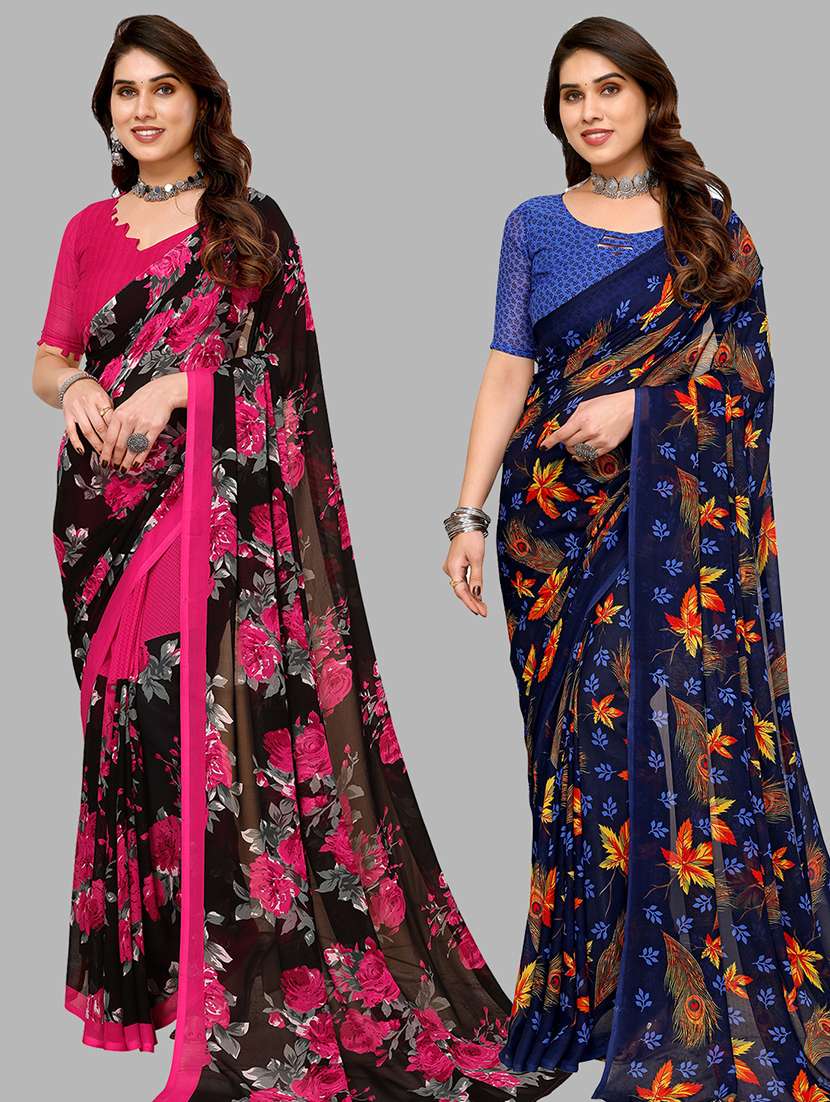 pack of 2 casual wear combo sarees with blouse