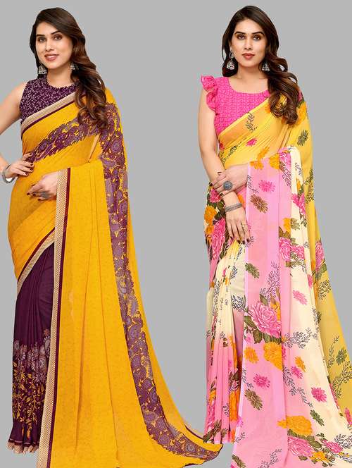 women pack of 2 casual wear sarees with blouse - 21439943 - Very Small Image - 1