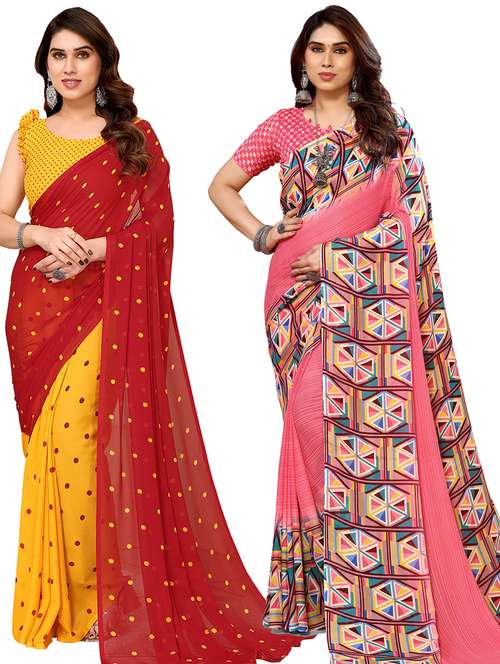 pack of 2 casual wear combo sarees with blouse - 21439947 - Very Small Image - 1