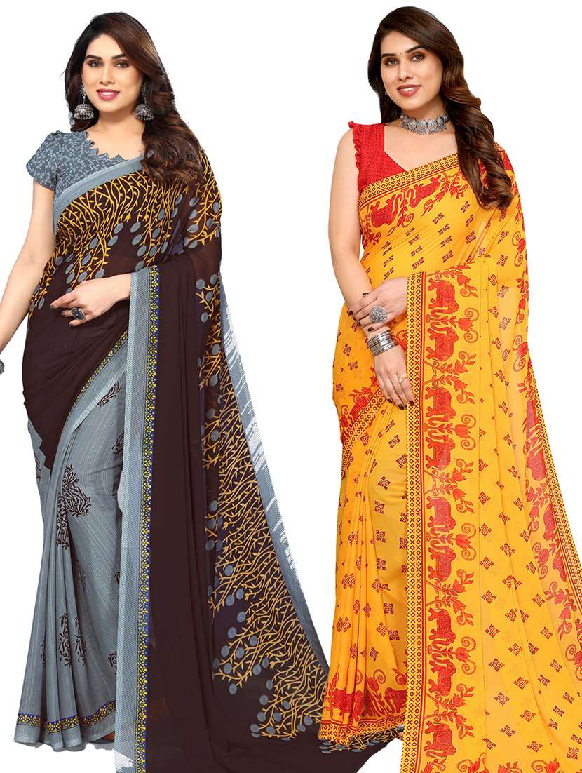 pack of 2 printed sarees with blouse - 21440038 - Very Small Image - 1