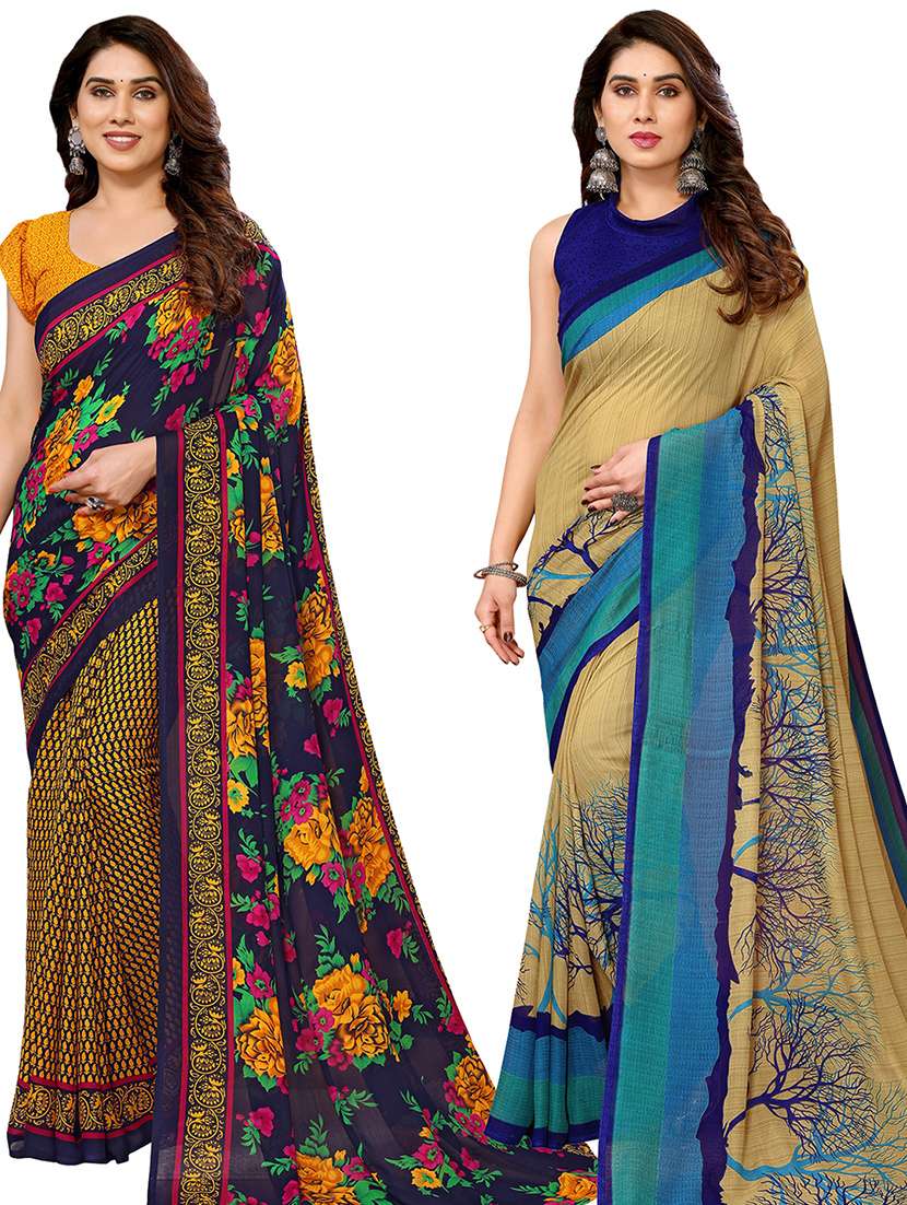 pack of 2 printed casual wear saree with blouse - 21440046 - Very Small Image - 1