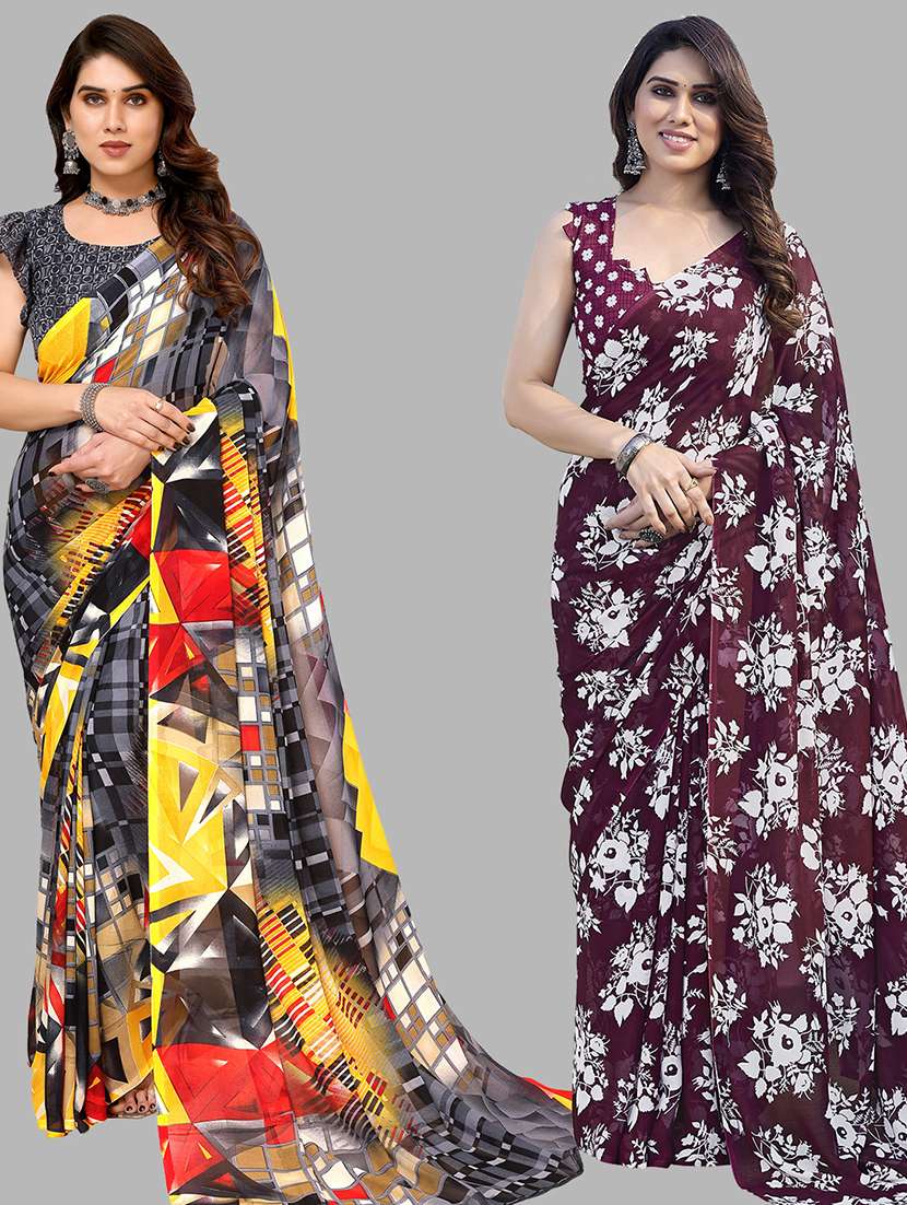 women pack of 2 casual wear sarees with blouse