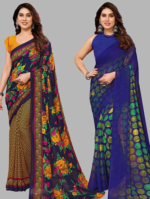 pack of 2 casual wear combo sarees with blouse - 21440086 - Very Small Image - 1