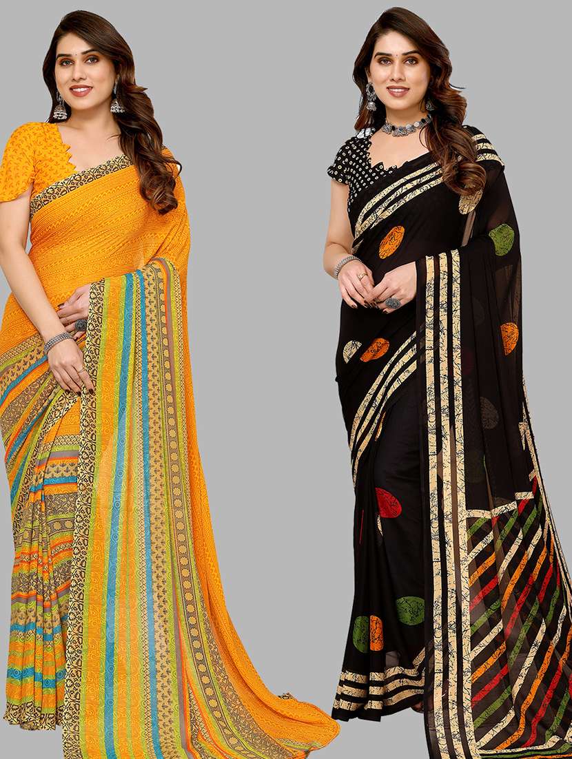 pack of 2 printed casual wear saree with blouse