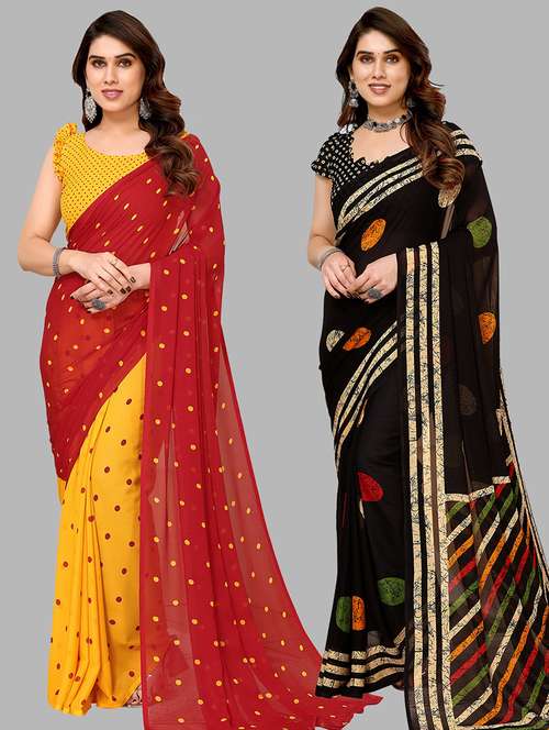 pack of 2 casual wear combo sarees with blouse