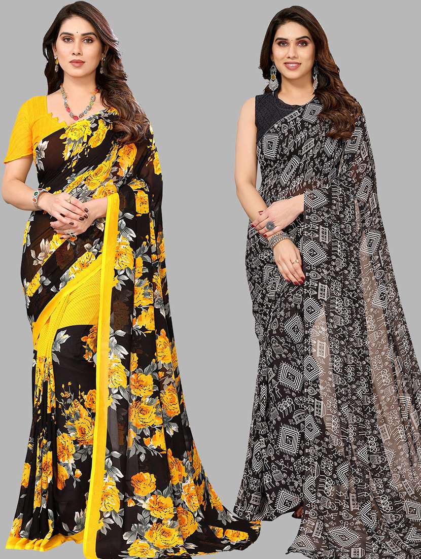 pack of 2 casual wear combo sarees with blouse