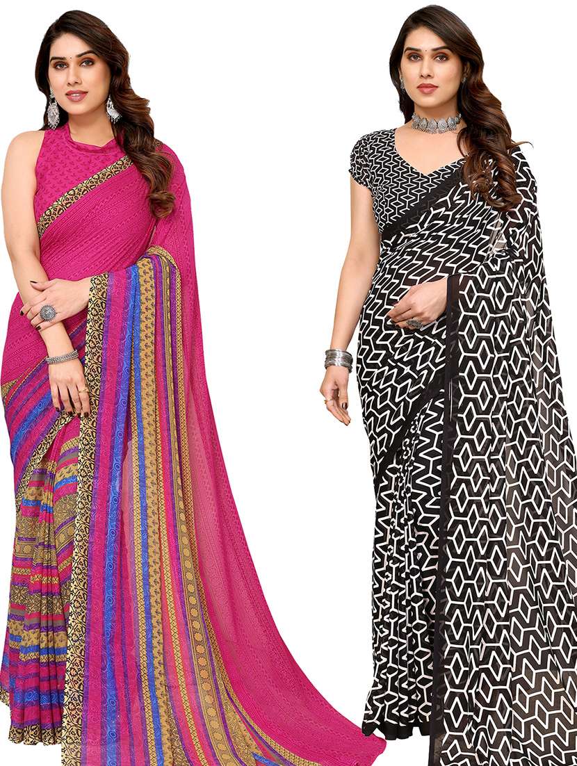 women pack of 2 casual wear sarees with blouse - 21440177 - Very Small Image - 1