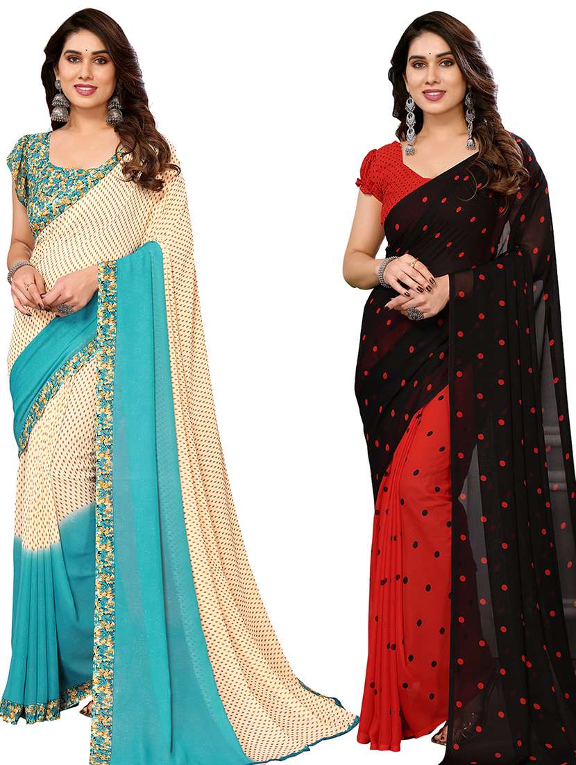pack of 2 casual wear combo sarees with blouse - 21440207 - Very Small Image - 1