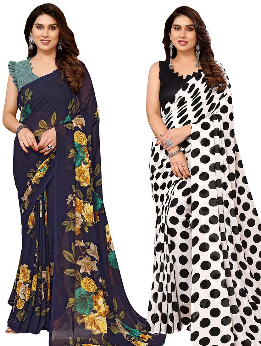 women pack of 2 casual wear sarees with blouse - 21440213 - Very Small Image - 1