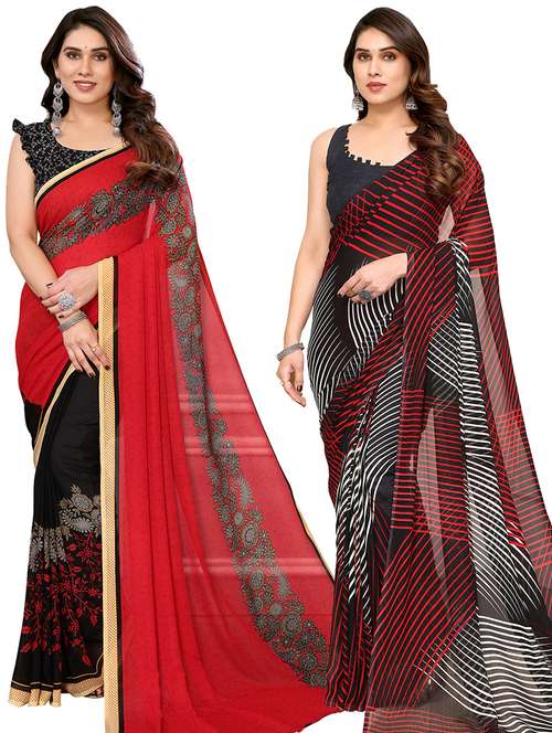 pack of 2 printed casual wear sarees with blouse - 21440256 - Very Small Image - 1