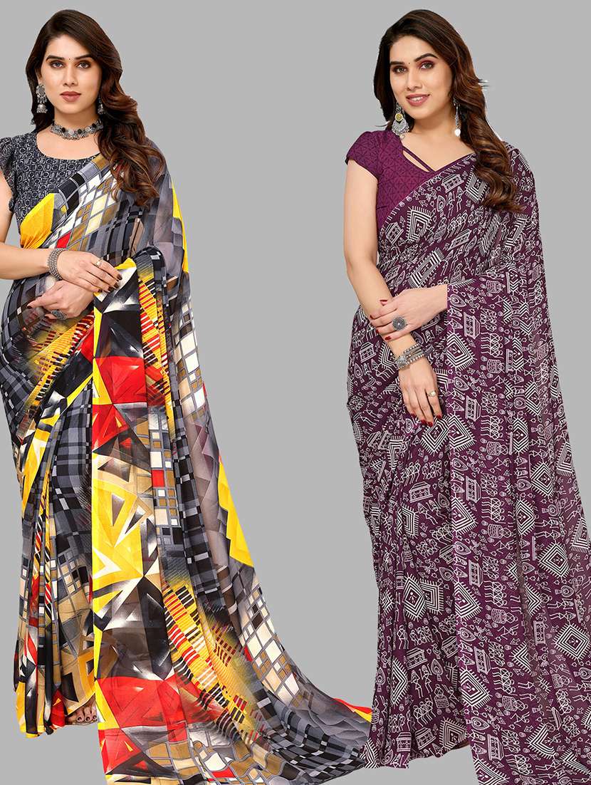 pack of 2 printed casual wear sarees with blouse