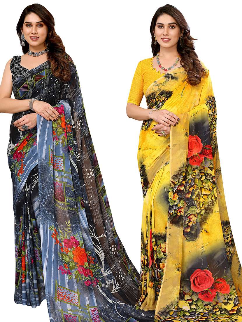 pack of 2 printed casual wear sarees with blouse - 21440360 - Very Small Image - 1