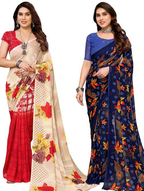 pack of 2 printed casual wear sarees with blouse - 21440375 - Very Small Image - 1