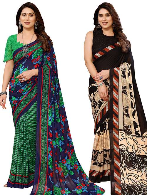 women pack of 2 casual wear combo sarees with blouse