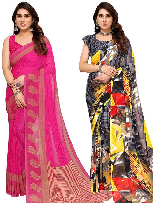 pack of 2 casual wear combo sarees with blouse - 21440477 - Very Small Image - 1