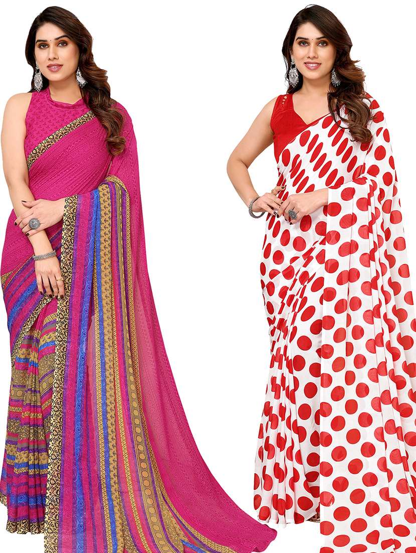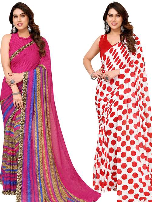 women pack of 2 casual wear combo sarees with blouse