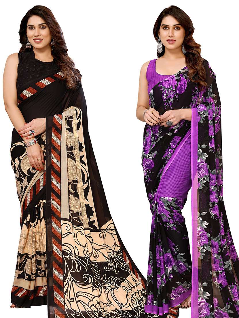 pack of 2 printed casual wear saree with blouse - 21440490 - Very Small Image - 1