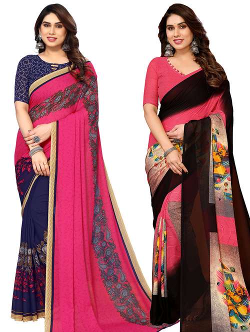 women pack of 2 casual wear sarees with blouse - 21440521 - Very Small Image - 1