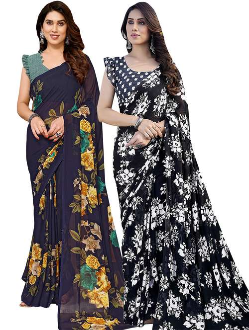 pack of 2 printed casual wear sarees with blouse