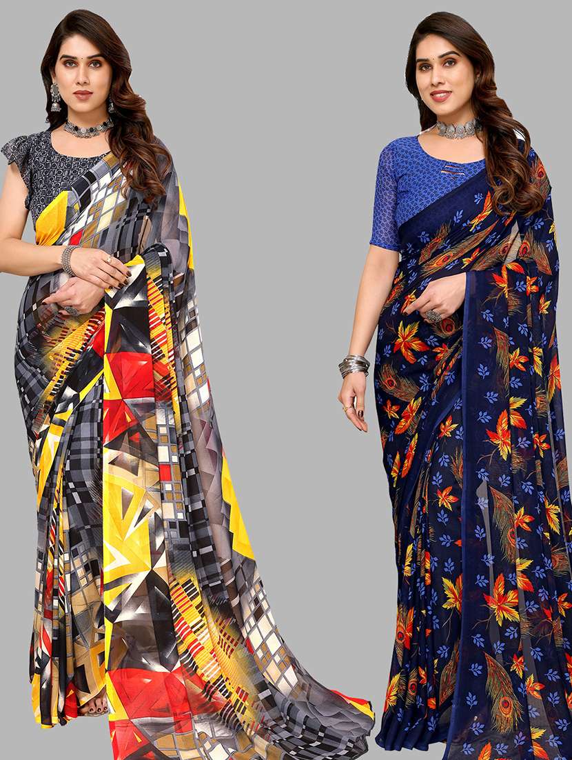pack of 2 casual wear combo sarees with blouse - 21440567 - Very Small Image - 1