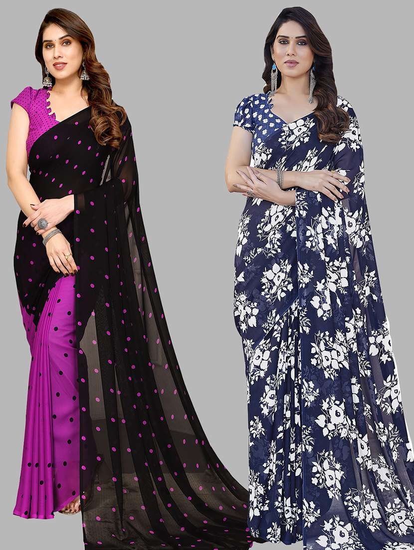 pack of 2 casual wear combo sarees with blouse - 21440574 - Very Small Image - 1