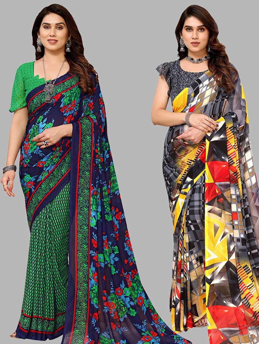 pack of 2 casual wear combo sarees with blouse