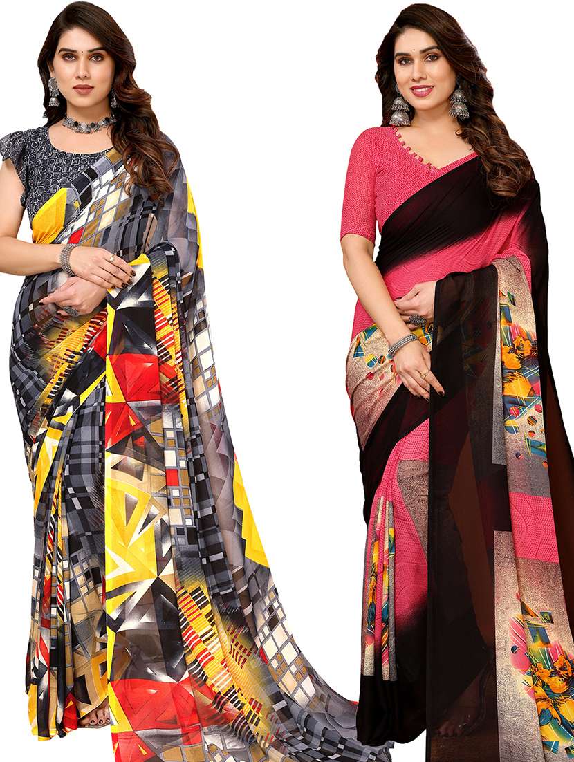 pack of 2 casual wear combo sarees with blouse - 21440693 - Very Small Image - 1