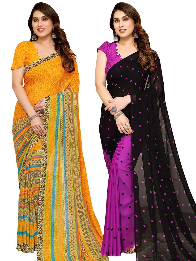 pack of 2 casual wear combo sarees with blouse - 21440749 - Very Small Image - 1