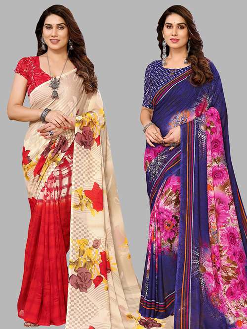 pack of 2 printed casual wear saree with blouse - 21440863 - Very Small Image - 1