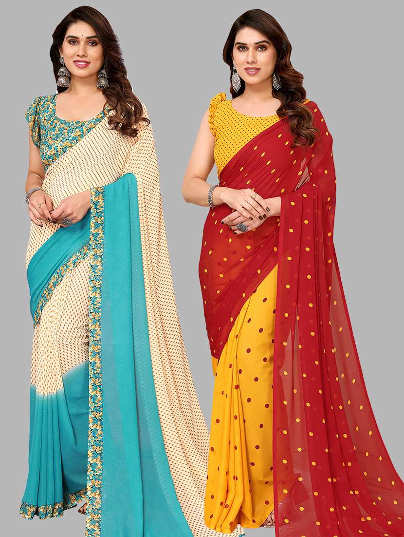 women pack of 2 casual wear sarees with blouse