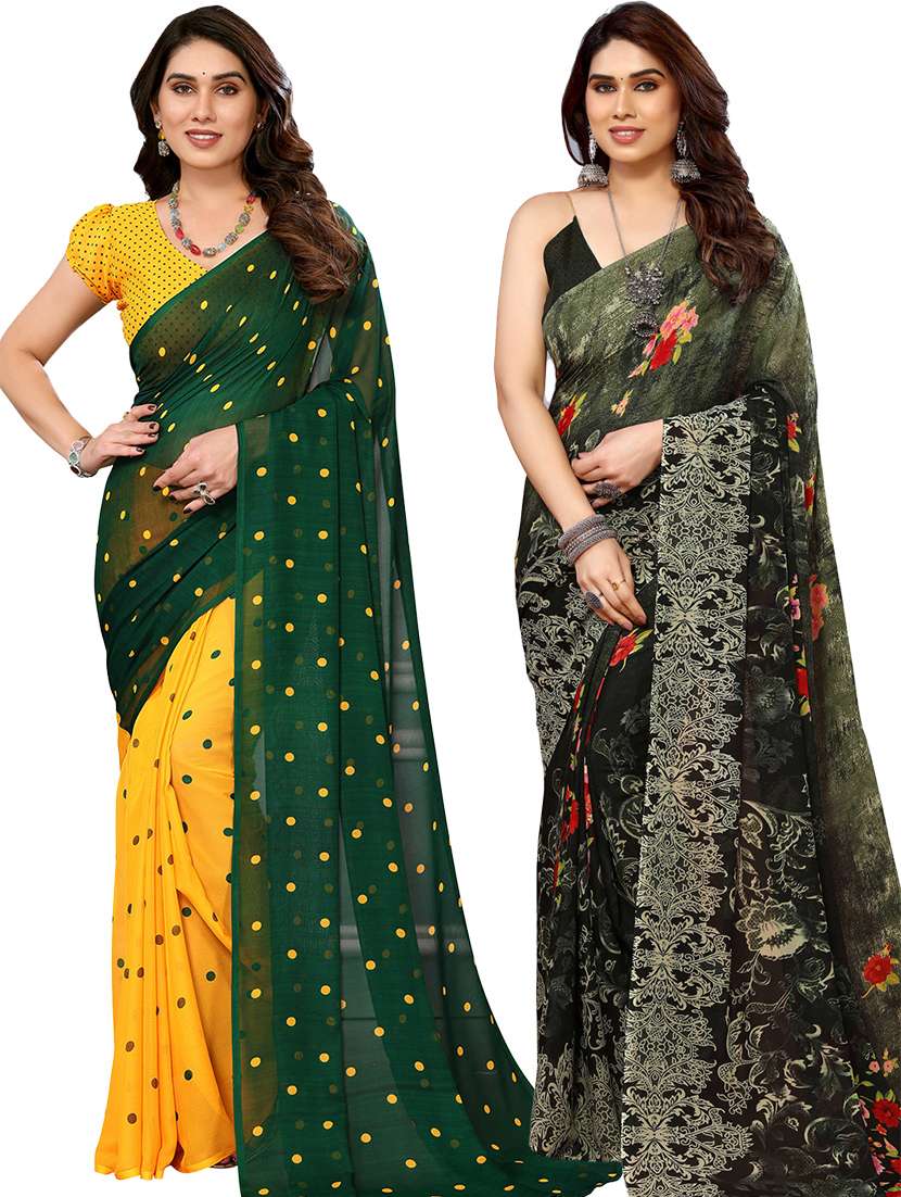 pack of 2 printed casual wear saree with blouse - 21440970 - Very Small Image - 1