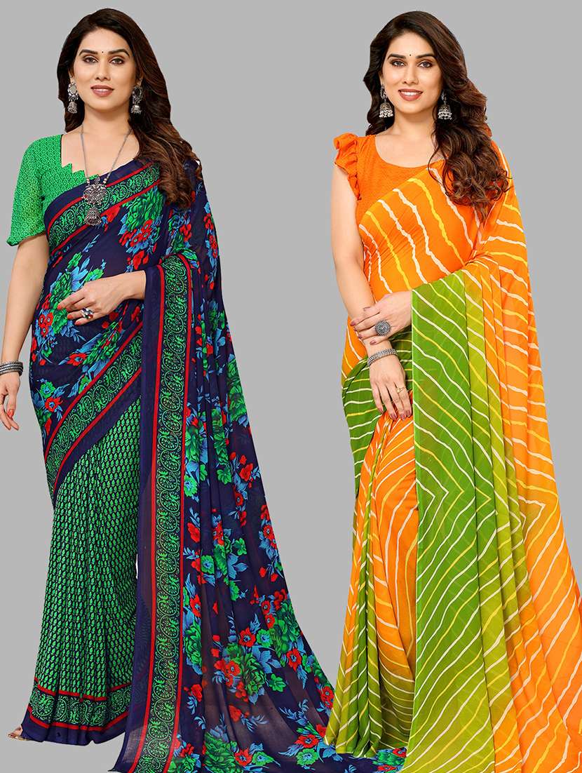 pack of 2 printed sarees with blouse