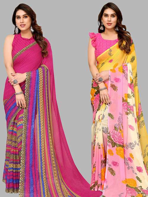 pack of 2 printed casual wear sarees with blouse - 21441001 - Very Small Image - 1