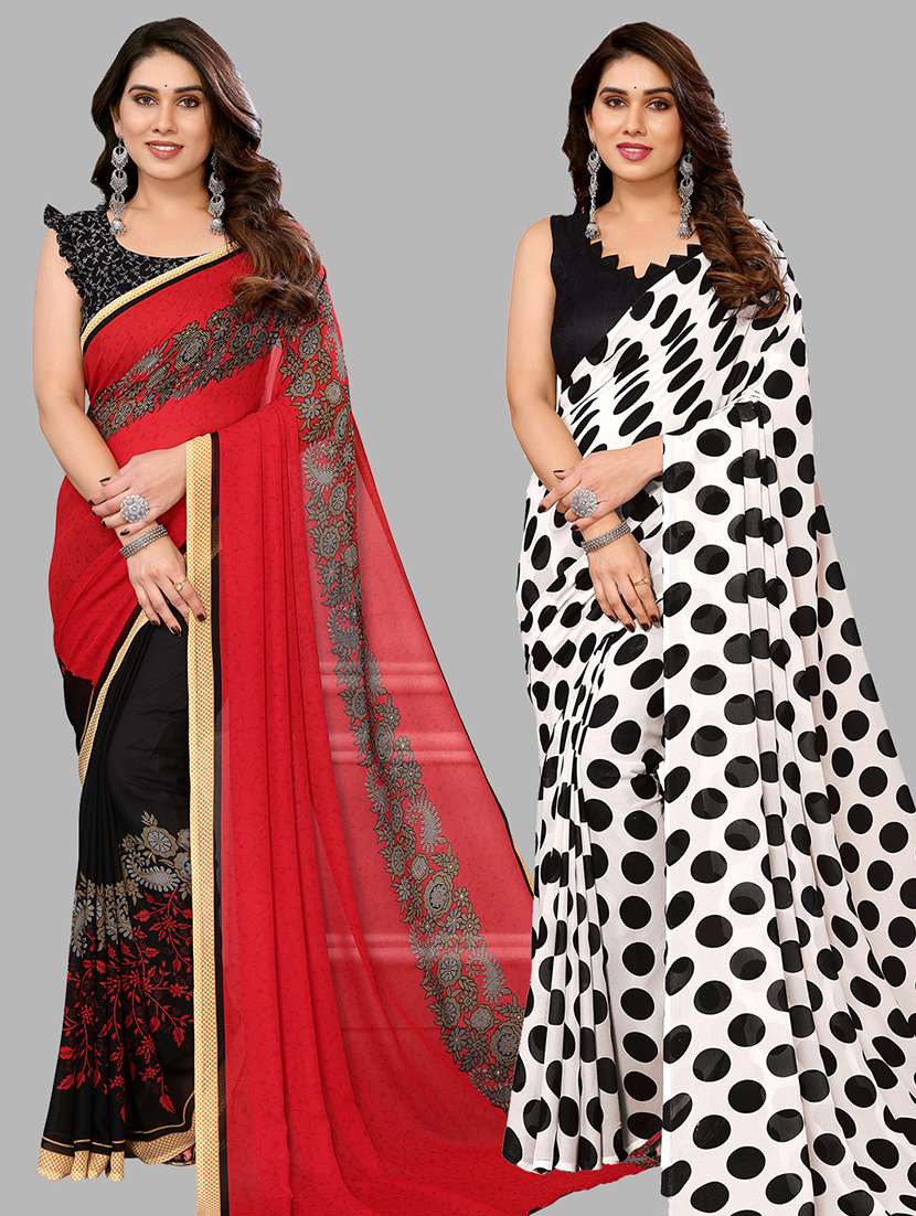 pack of 2 printed casual wear sarees with blouse - 21441014 - Very Small Image - 1