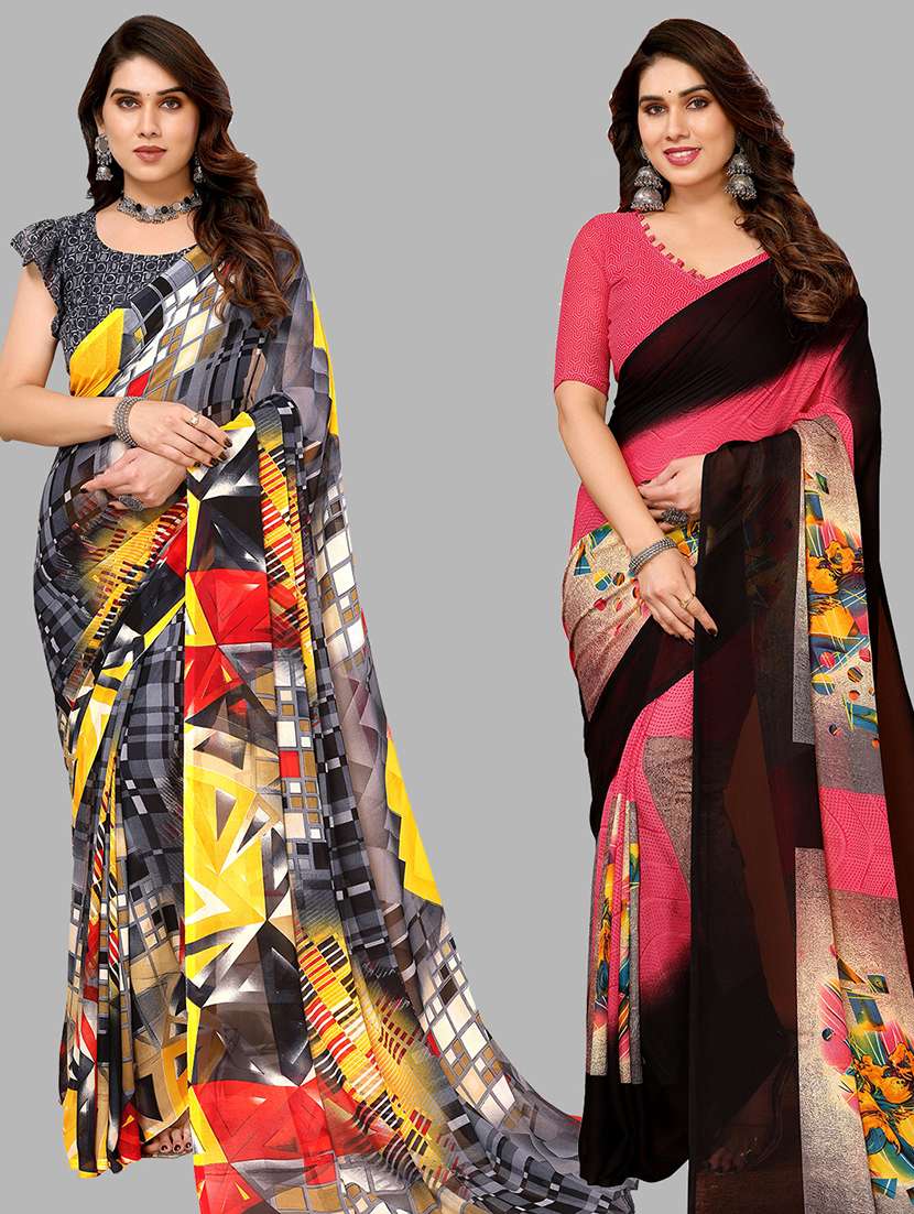 women pack of 2 printed casual sarees with blouse - 21441025 - Very Small Image - 1