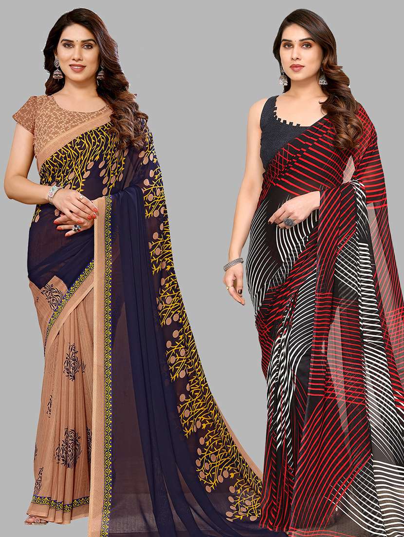 pack of 2 printed casual wear saree with blouse