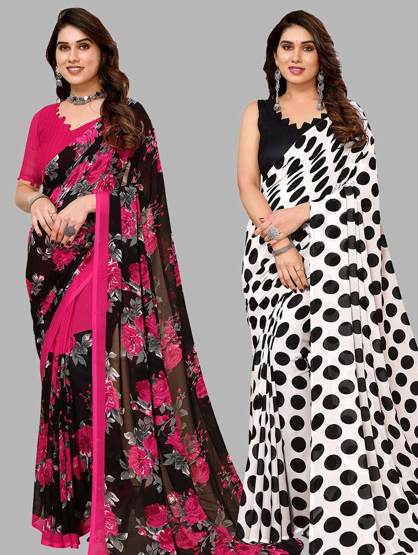 women pack of 2 printed casual sarees with blouse