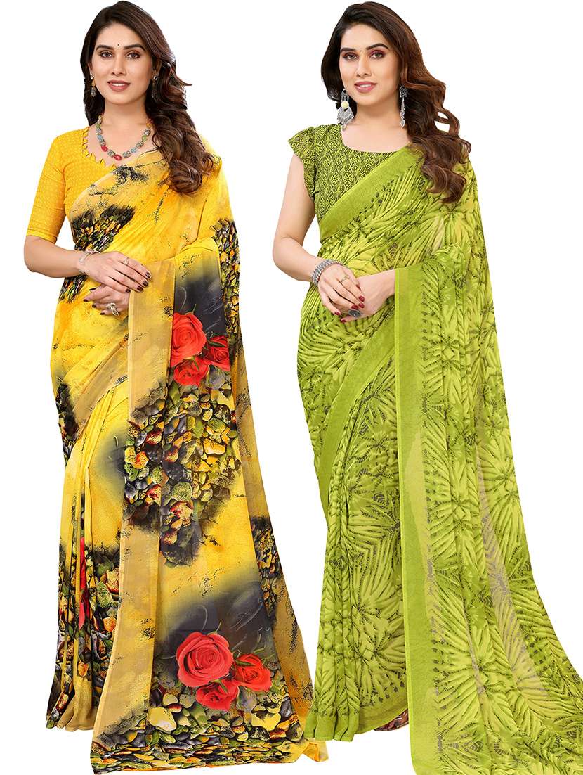 women pack of 2 casual wear sarees with blouse - 21441100 - Very Small Image - 1