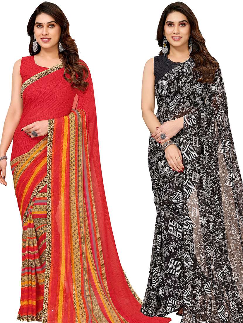 women pack of 2 printed casual sarees with blouse - 21441116 - Very Small Image - 1