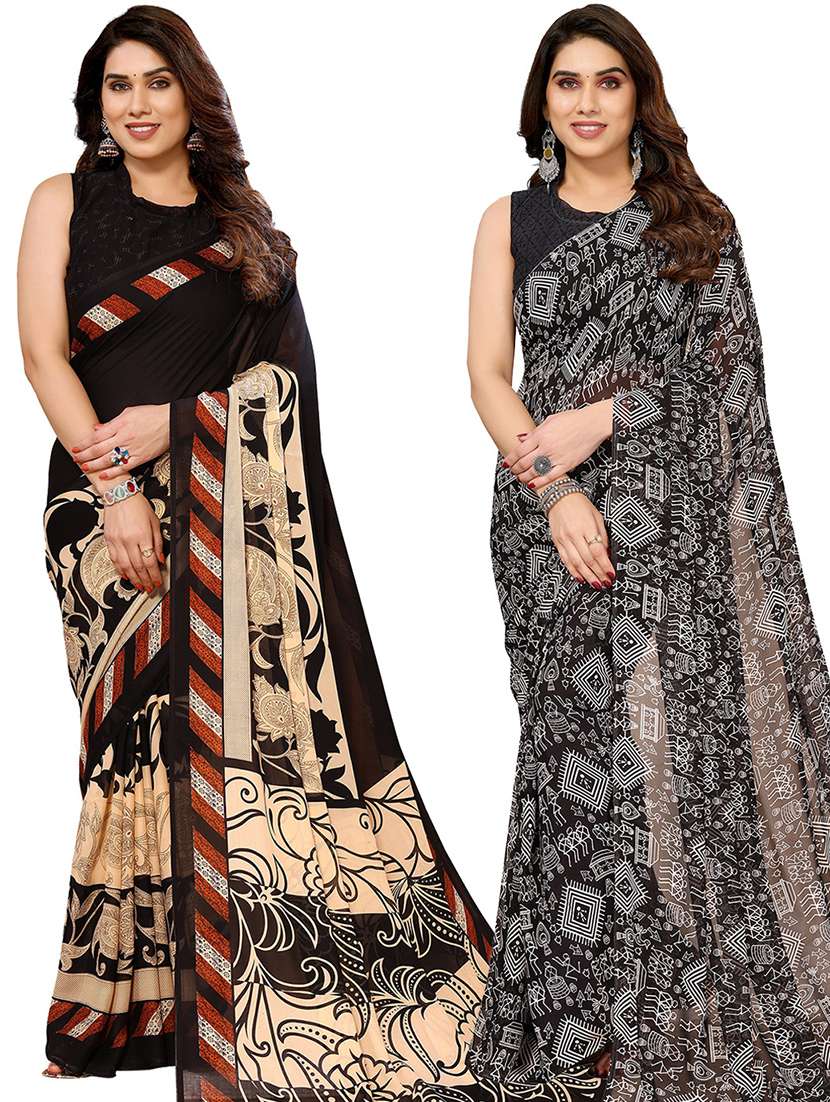 women pack of 2 casual wear sarees with blouse
