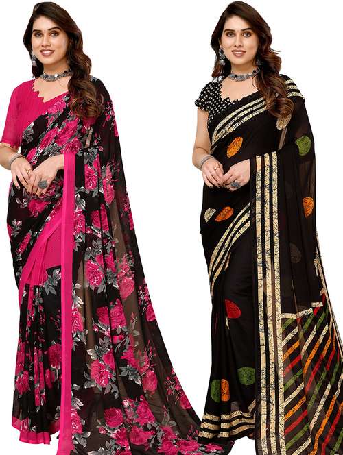 women pack of 2 printed casual sarees with blouse - 21441174 - Very Small Image - 1