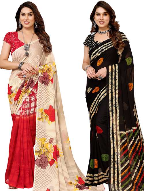 women pack of 2 casual wear sarees with blouse - 21441175 - Very Small Image - 1